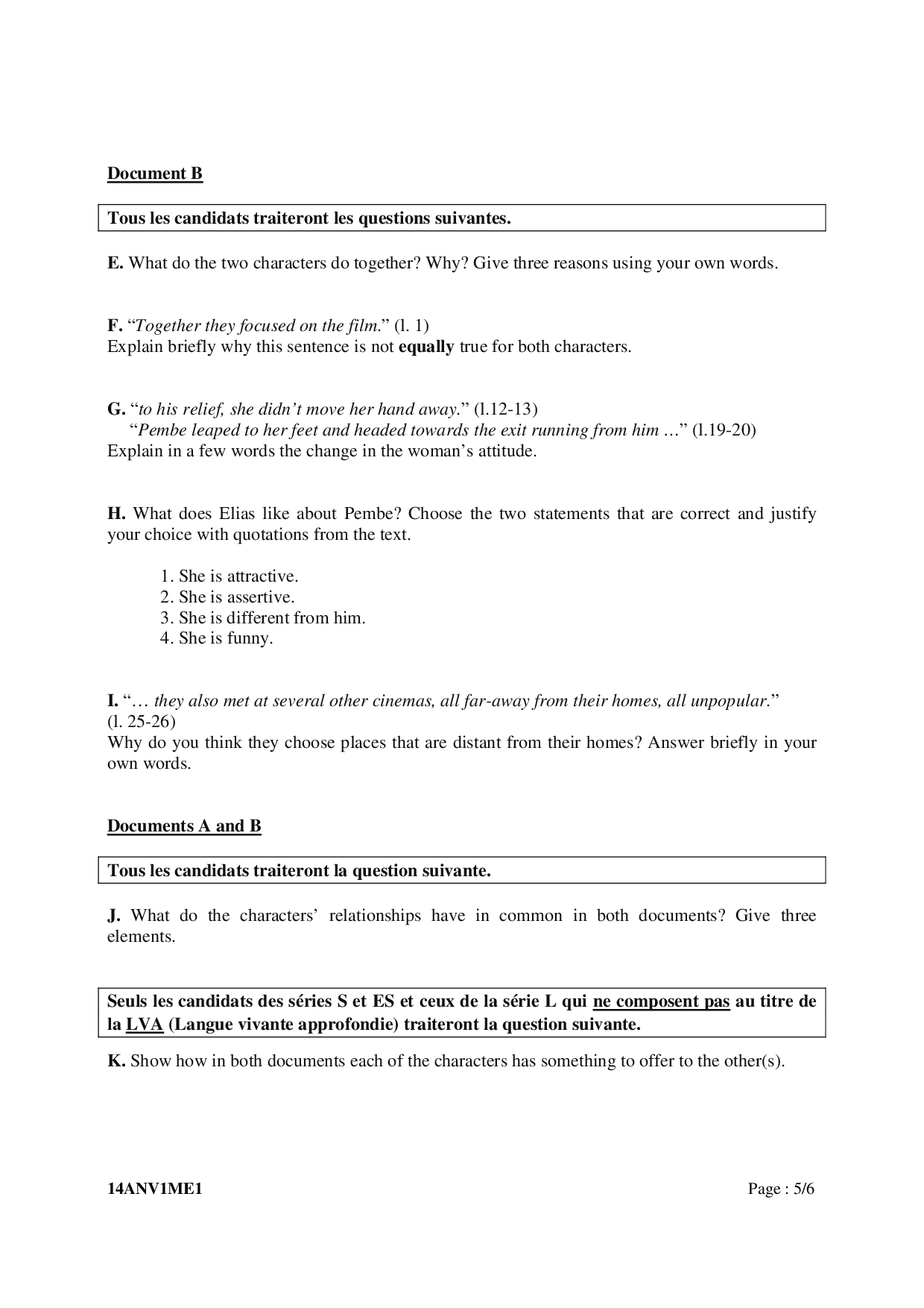 Bac S-ES-L Anglais LV1 Métropole 2014 - Sujet