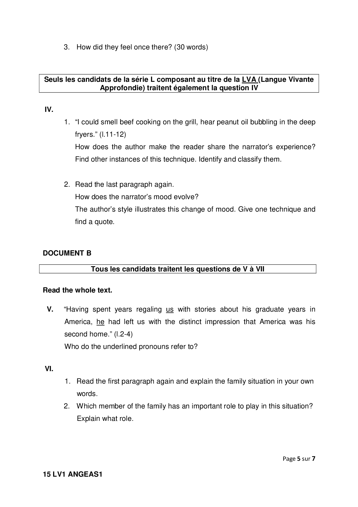 Bac S-ES-L Anglais LV1 Amérique du Sud 2015 - Sujet