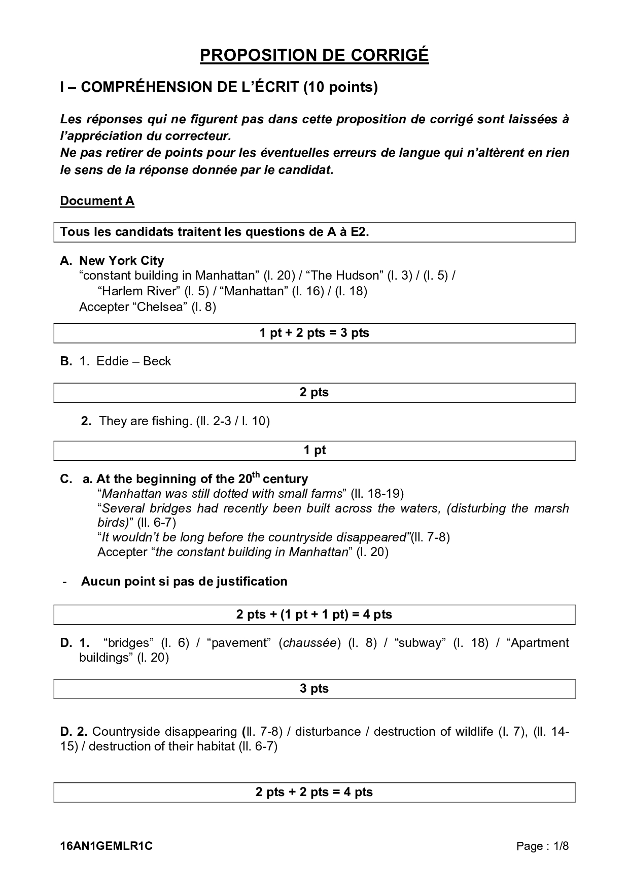 Bac S-ES-L Anglais LV1 Métropole 2016 - Corrigé