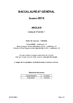 Bac S-ES-L Anglais LV1 Pondichéry 2016 - Sujet