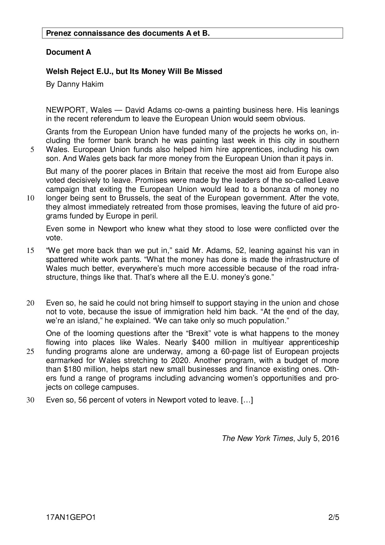 Bac S-ES-L Anglais LV1 Polynésie 2017 - Sujet