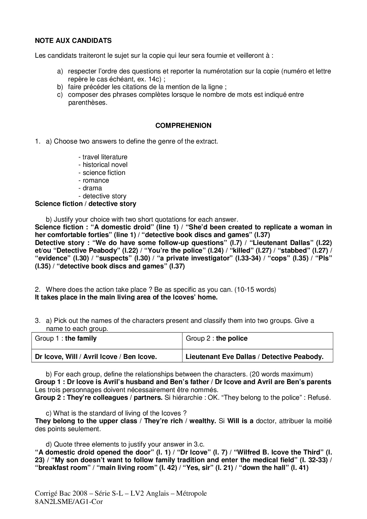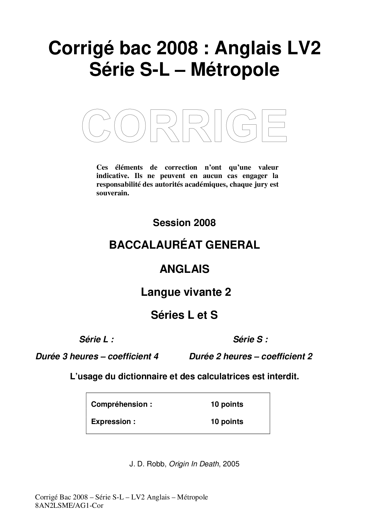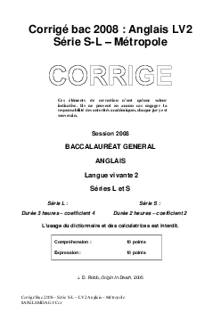 Bac S-L Anglais LV2 Métropole 2008 - Corrigé