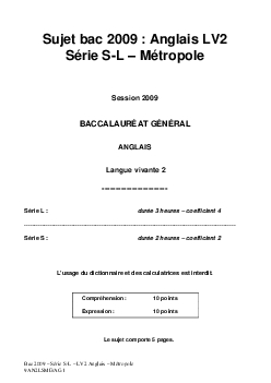 Bac S-L Anglais LV2 Métropole 2009 - Sujet