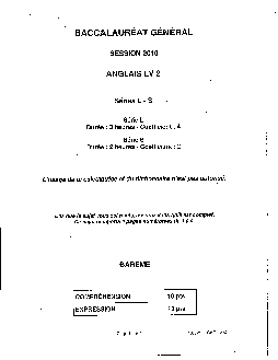 Bac S-L Anglais LV2 Amérique du Nord 2010 - Sujet