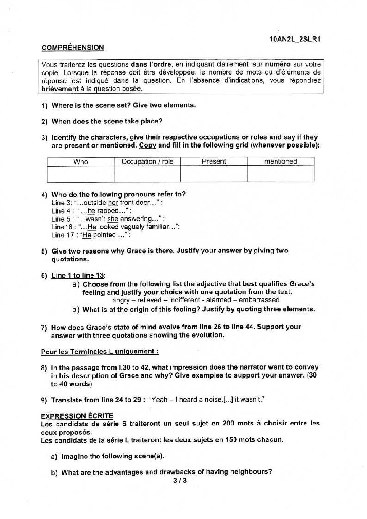 Bac S-L Anglais LV2 La Réunion 2010 - Sujet
