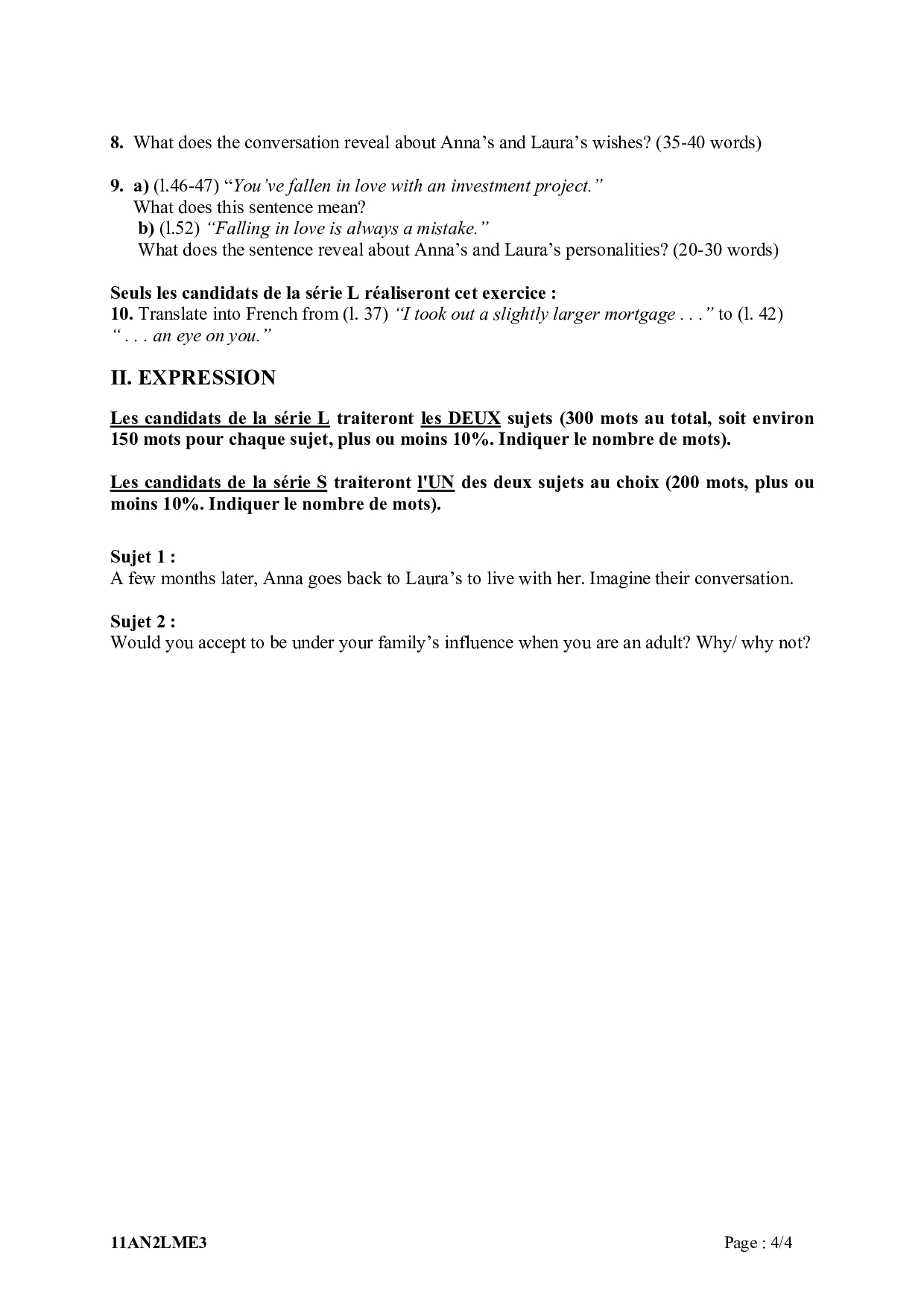 Bac S-L Anglais LV2 Métropole 2011 (Session de remplacement) - Sujet