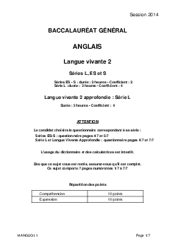 Bac S-ES-L Anglais LV2 Centres Etrangers Afrique 2014 - Sujet