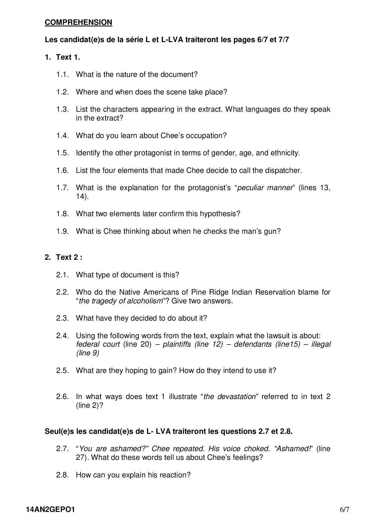 Bac S-ES-L Anglais LV2 Polynésie 2014 - Sujet