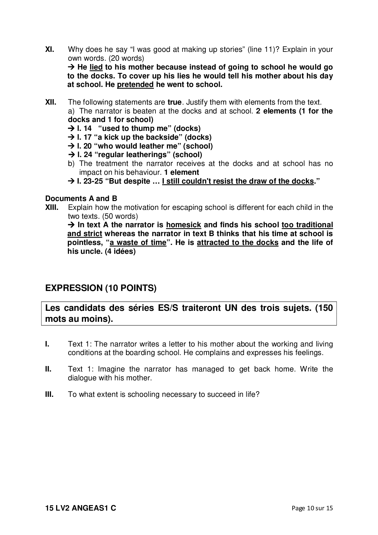 Bac S-ES-L Anglais LV2 Amérique du Sud 2015 - Corrigé