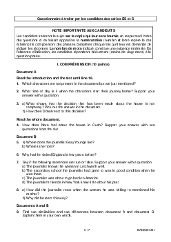 Bac S-ES-L Anglais LV2 Amérique du Nord 2016 - Sujet