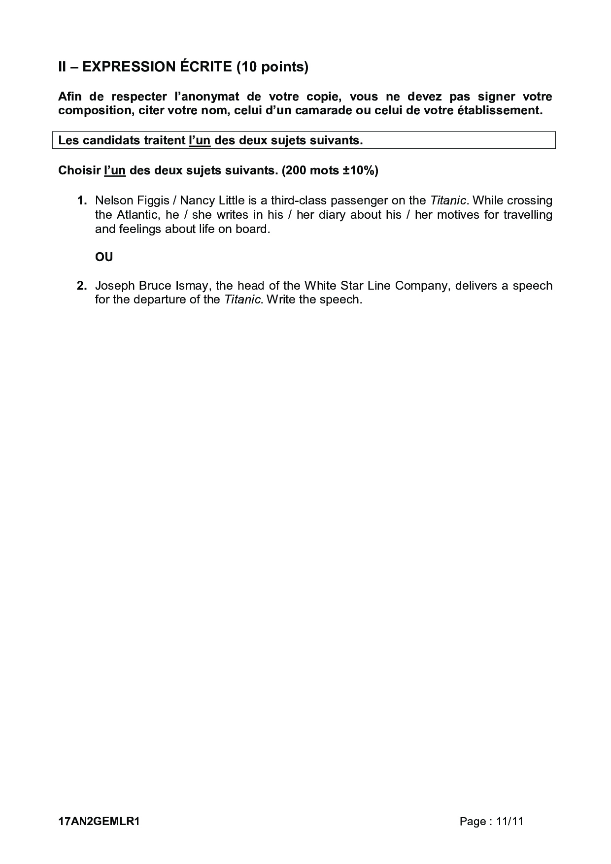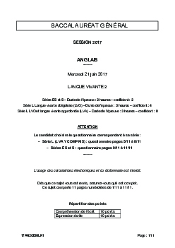 Bac S-ES-L Anglais LV2 Métropole 2017 - Sujet