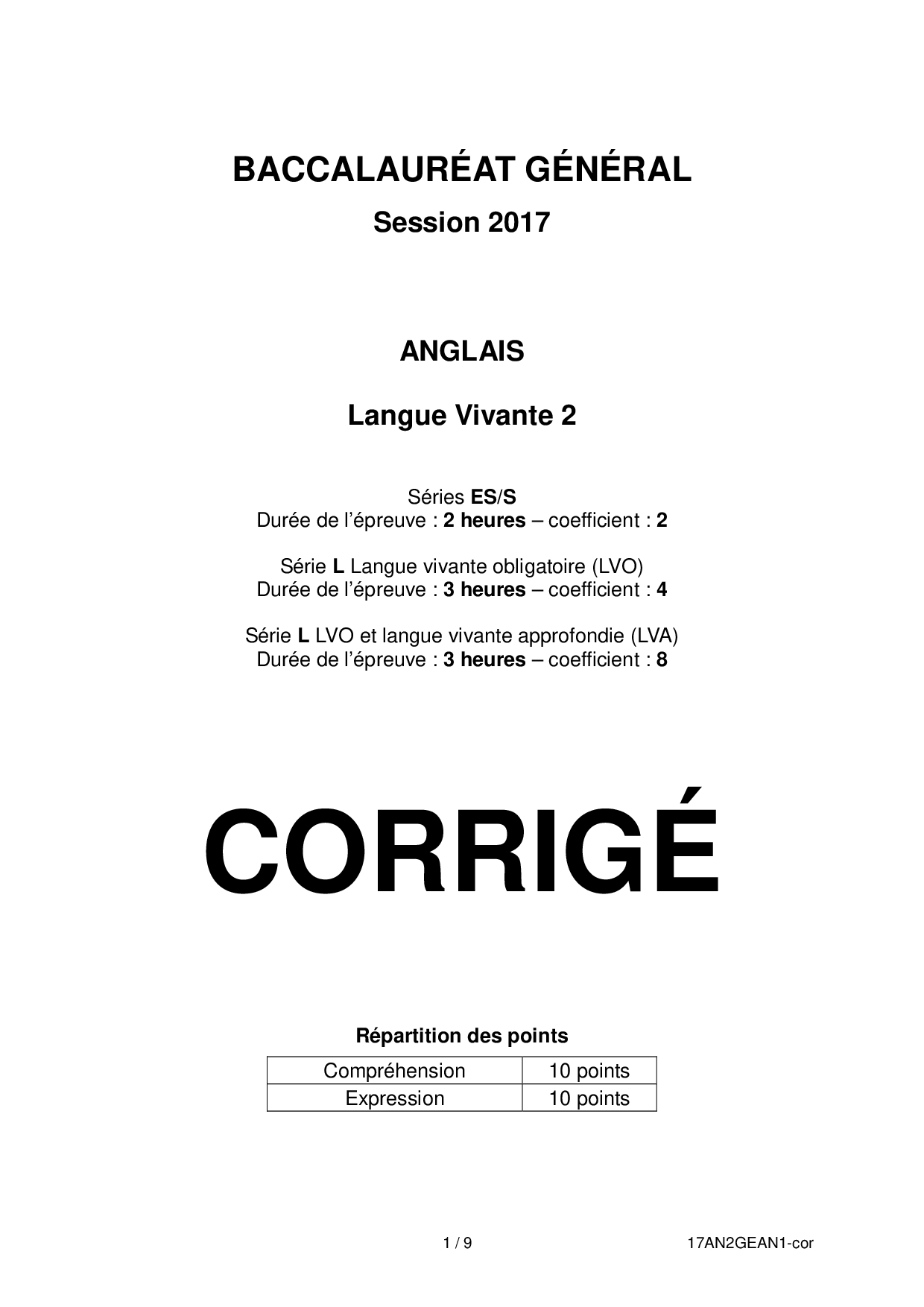 Bac S-ES-L Anglais LV2 Amérique du Nord 2017 - Corrigé