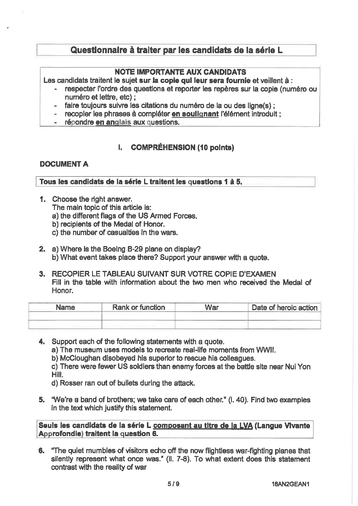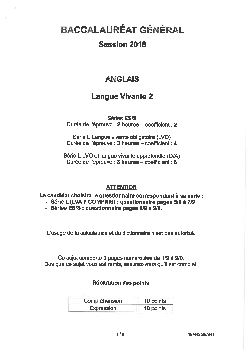 Bac S-ES-L Anglais LV2 Amérique du Nord 2018 - Sujet