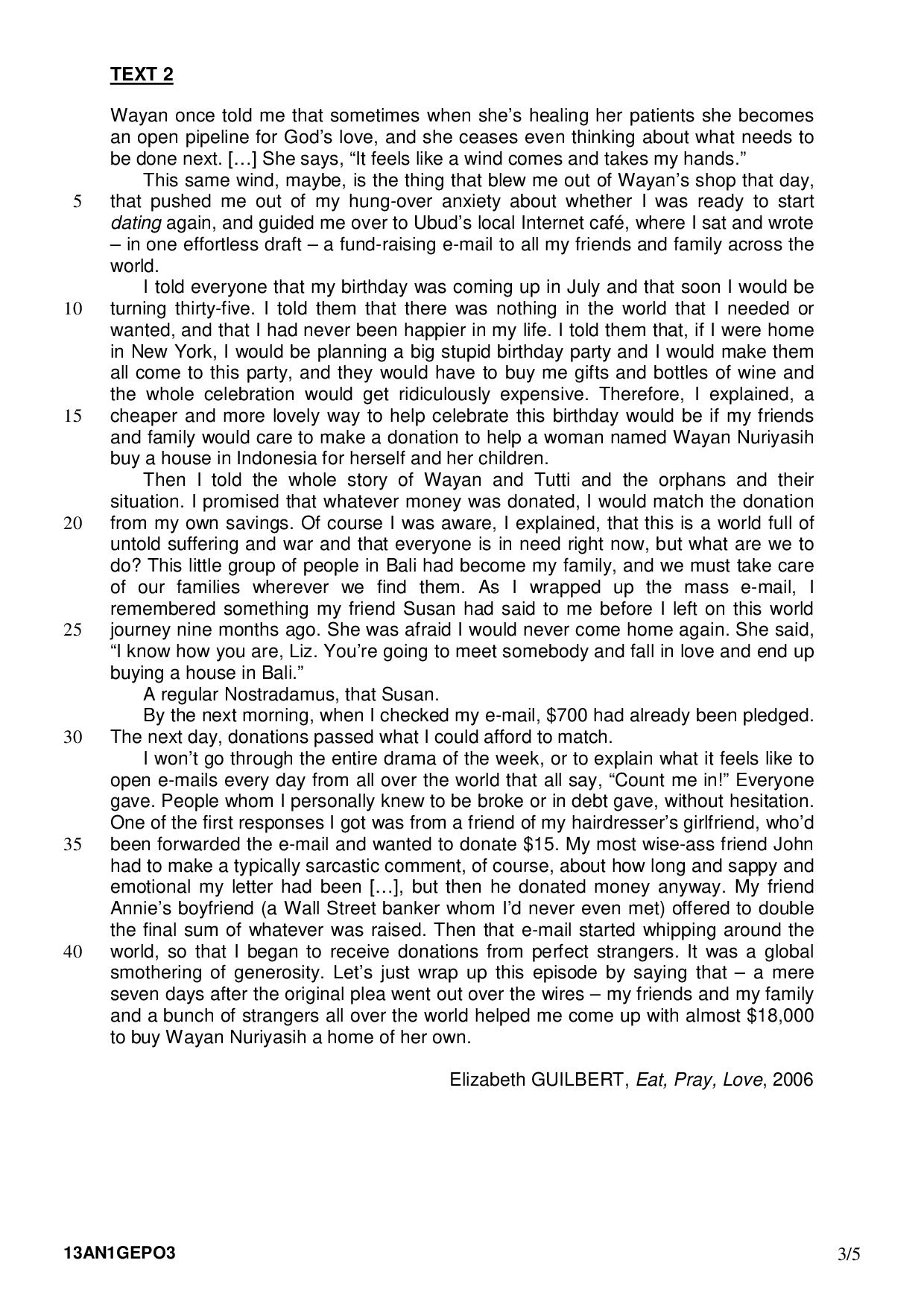 Bac S-ES-L Anglais LV1 Polynésie 2013 (Session de remplacement) - Sujet