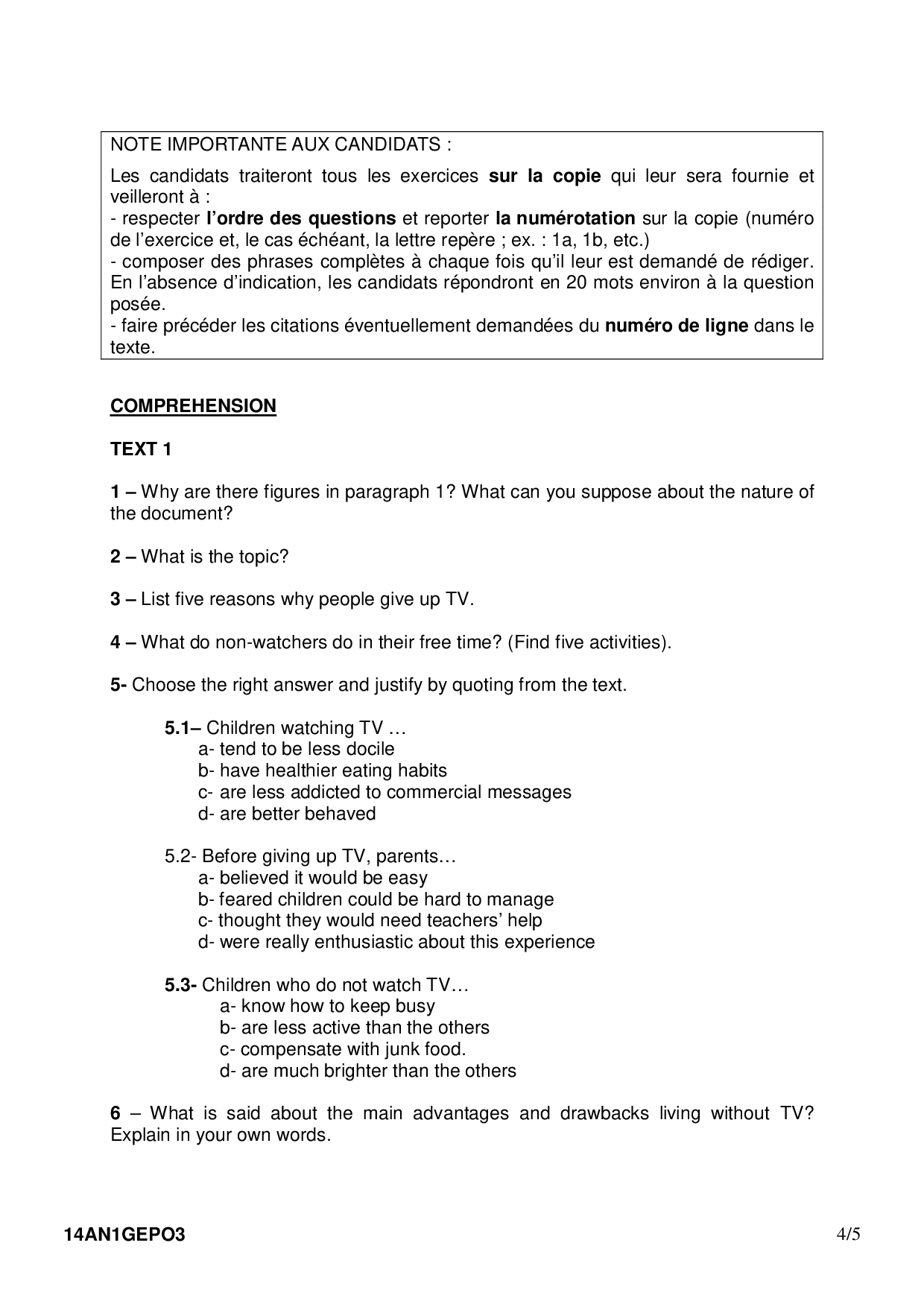 Bac S-ES-L Anglais LV1 Polynésie 2014 (Session de remplacement) - Sujet