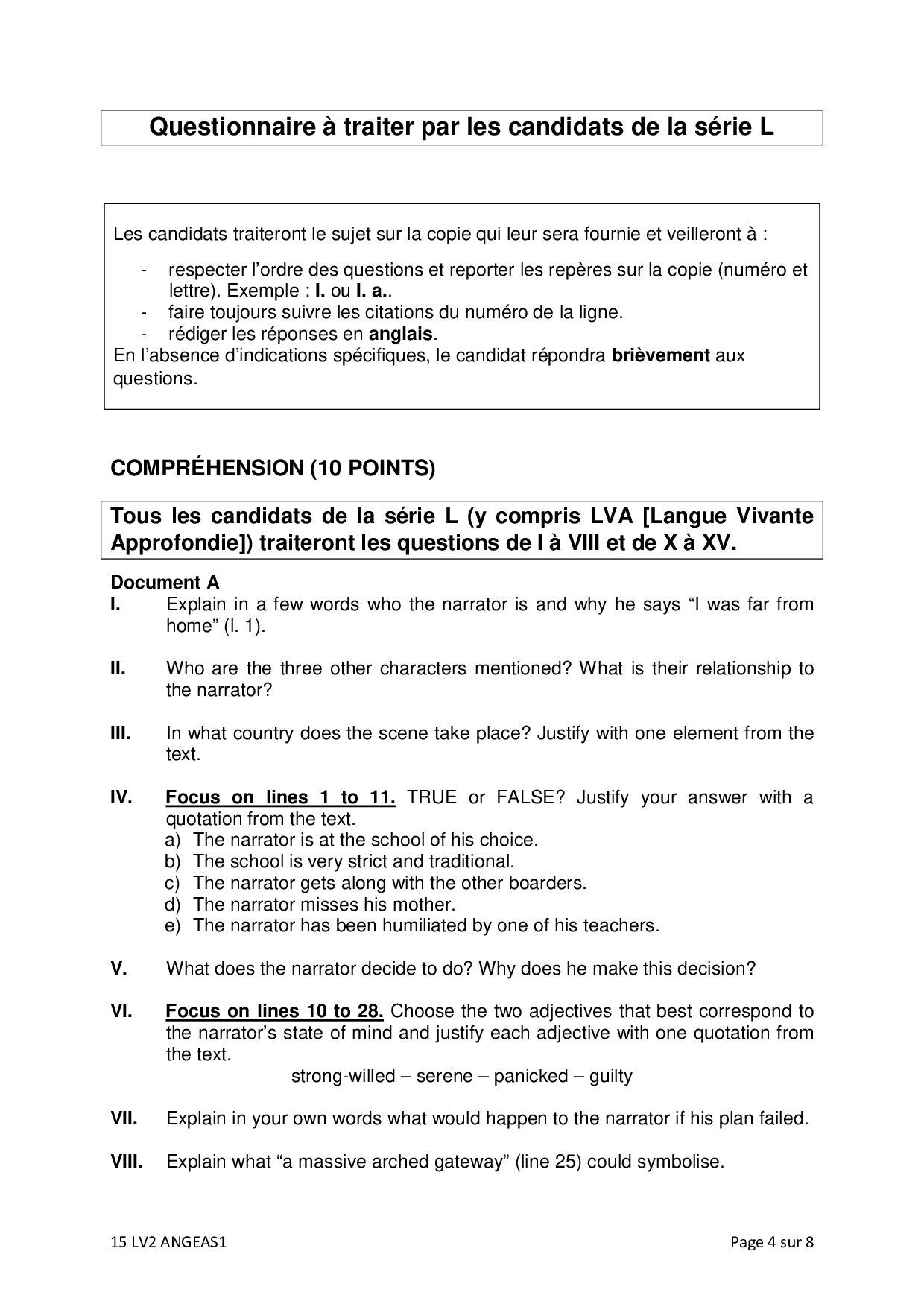 Bac S-ES-L Anglais LV2 Amérique du Sud 2015 - Sujet