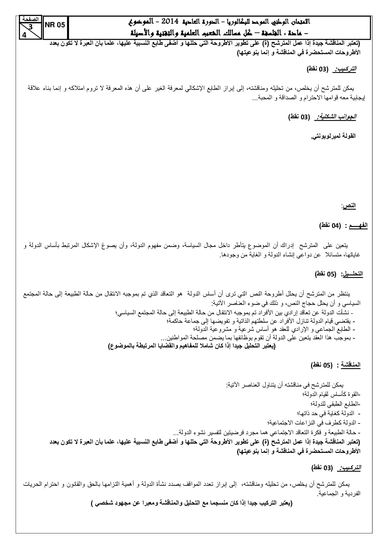 الفلسفة للشعب العلمية والتقنية 2014 الدورة العادية - التصحيح