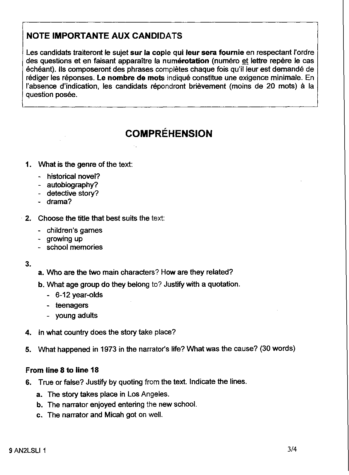 Bac S-L Anglais LV2 Liban 2009 - Sujet