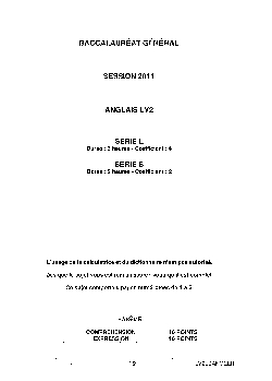 Bac S-L Anglais LV2 Liban 2011 - Sujet