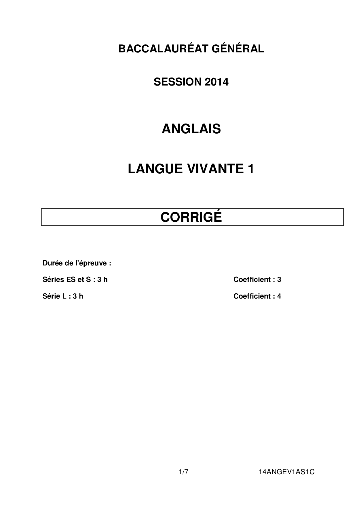 Bac S-ES-L Anglais LV1 Amérique du Sud 2014 - Corrigé