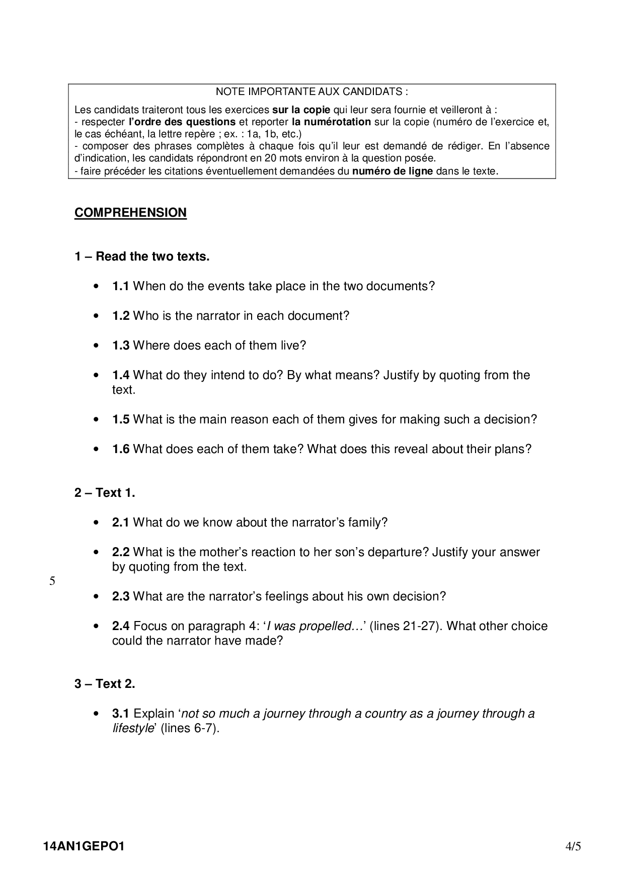 Bac S-ES-L Anglais LV1 Polynésie 2014 - Sujet