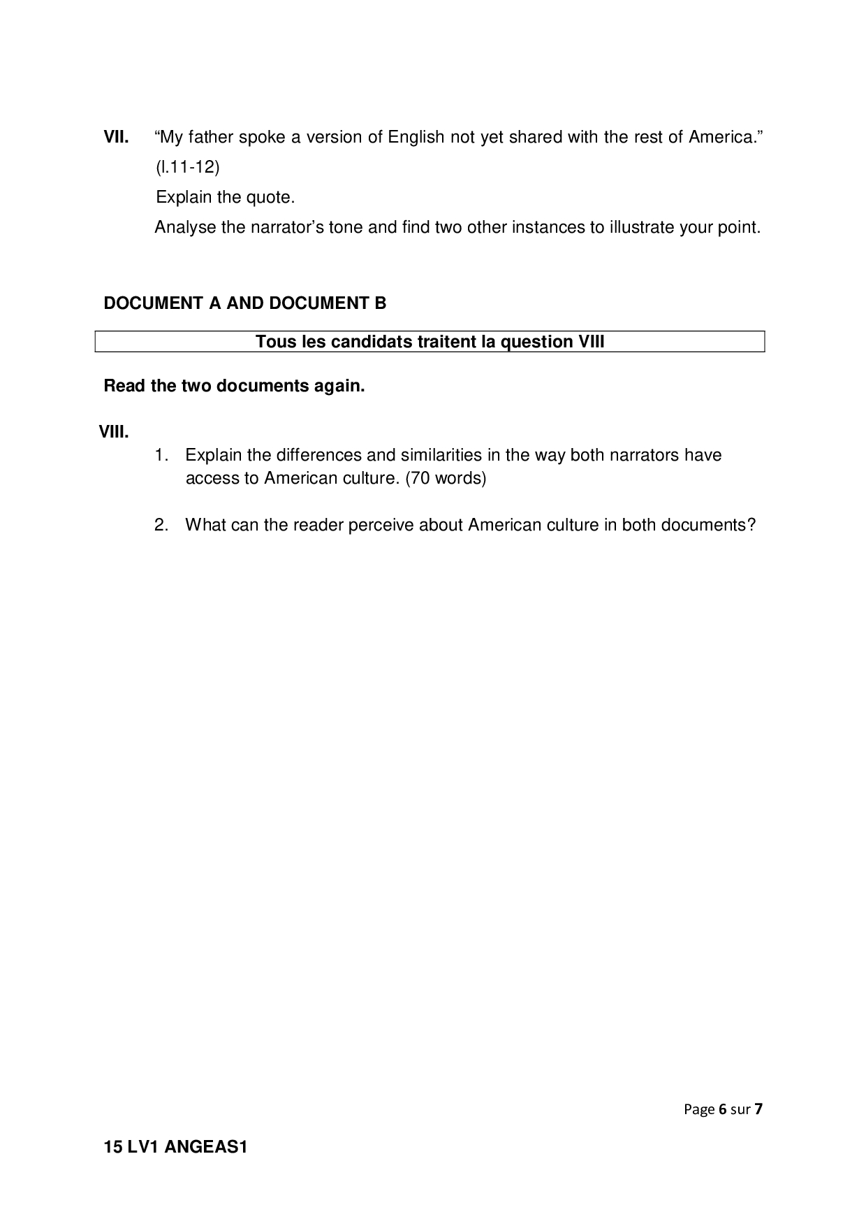 Bac S-ES-L Anglais LV1 Amérique du Sud 2015 - Sujet