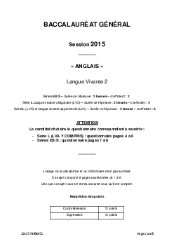 Bac S-ES-L Anglais LV2 Amérique du Sud 2015 - Sujet