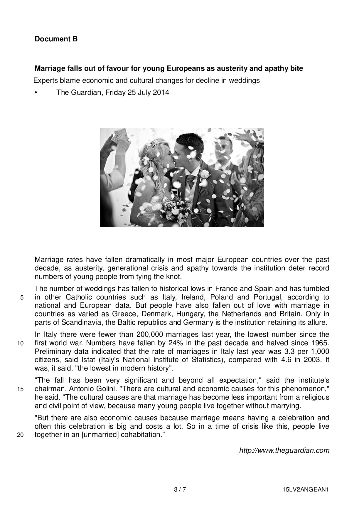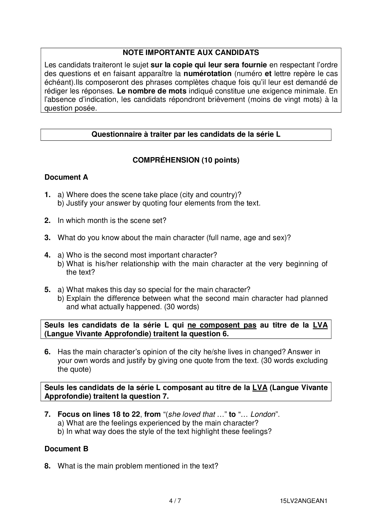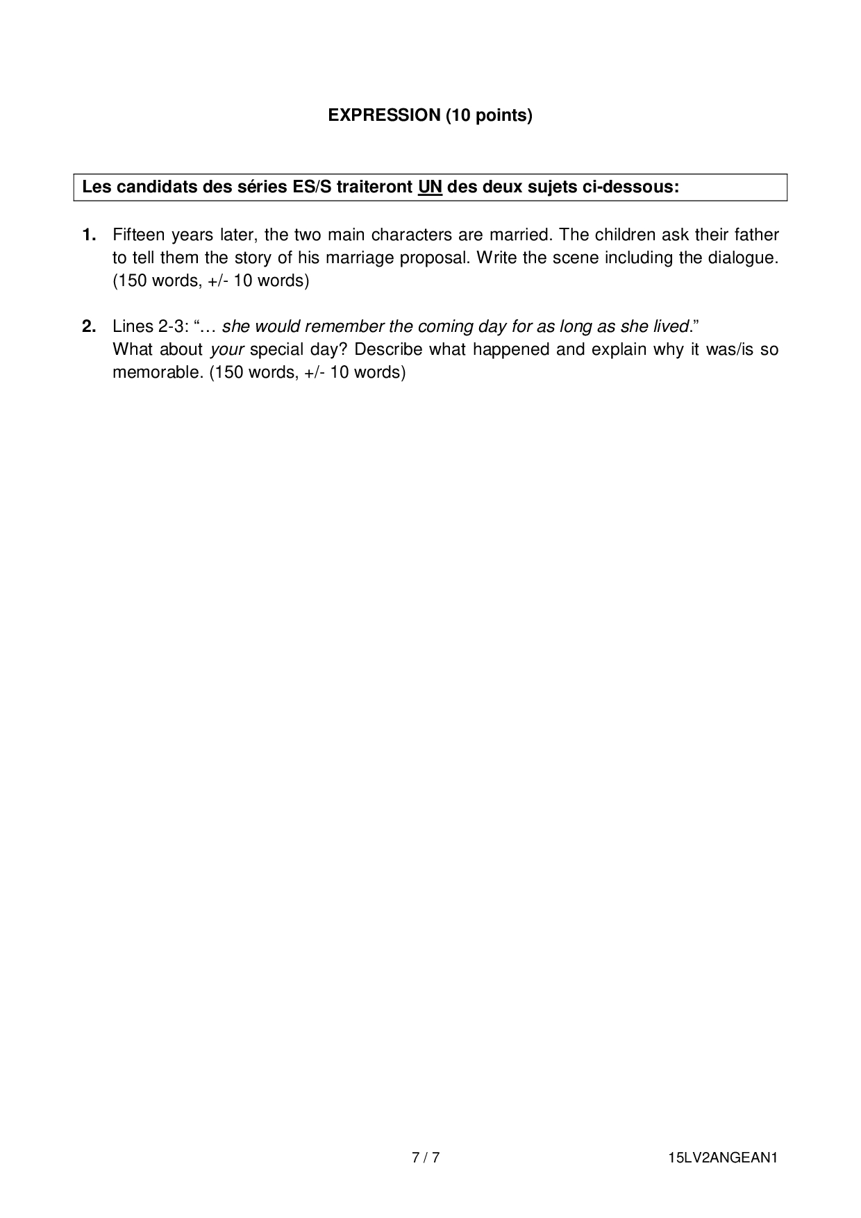 Bac S-ES-L Anglais LV2 Amérique du Nord 2015 - Sujet