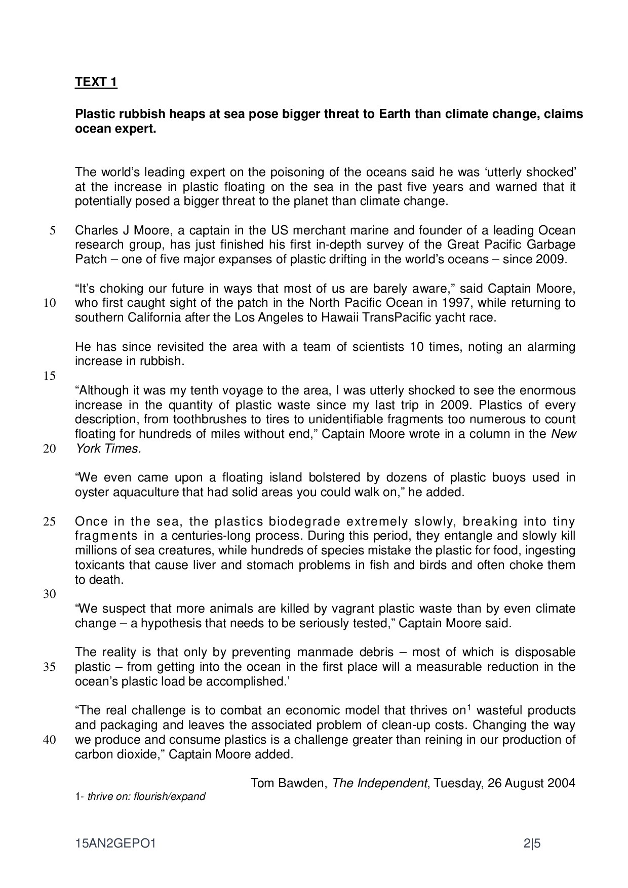 Bac S-ES-L Anglais LV2 Polynésie 2015 - Sujet