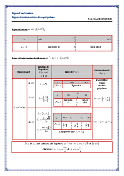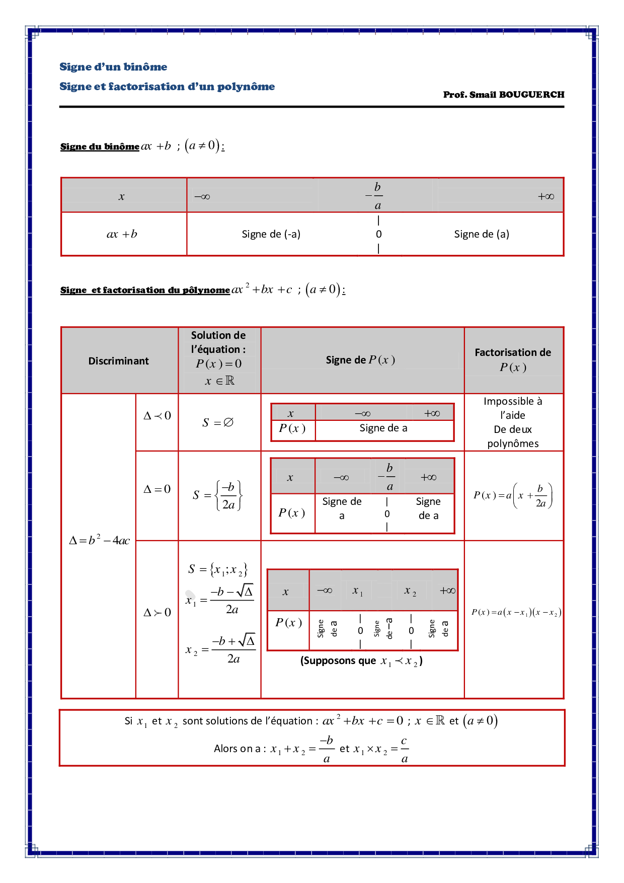 Signe d’un binôme - Signe et factorisation d’un polynôme - Résumé de cours