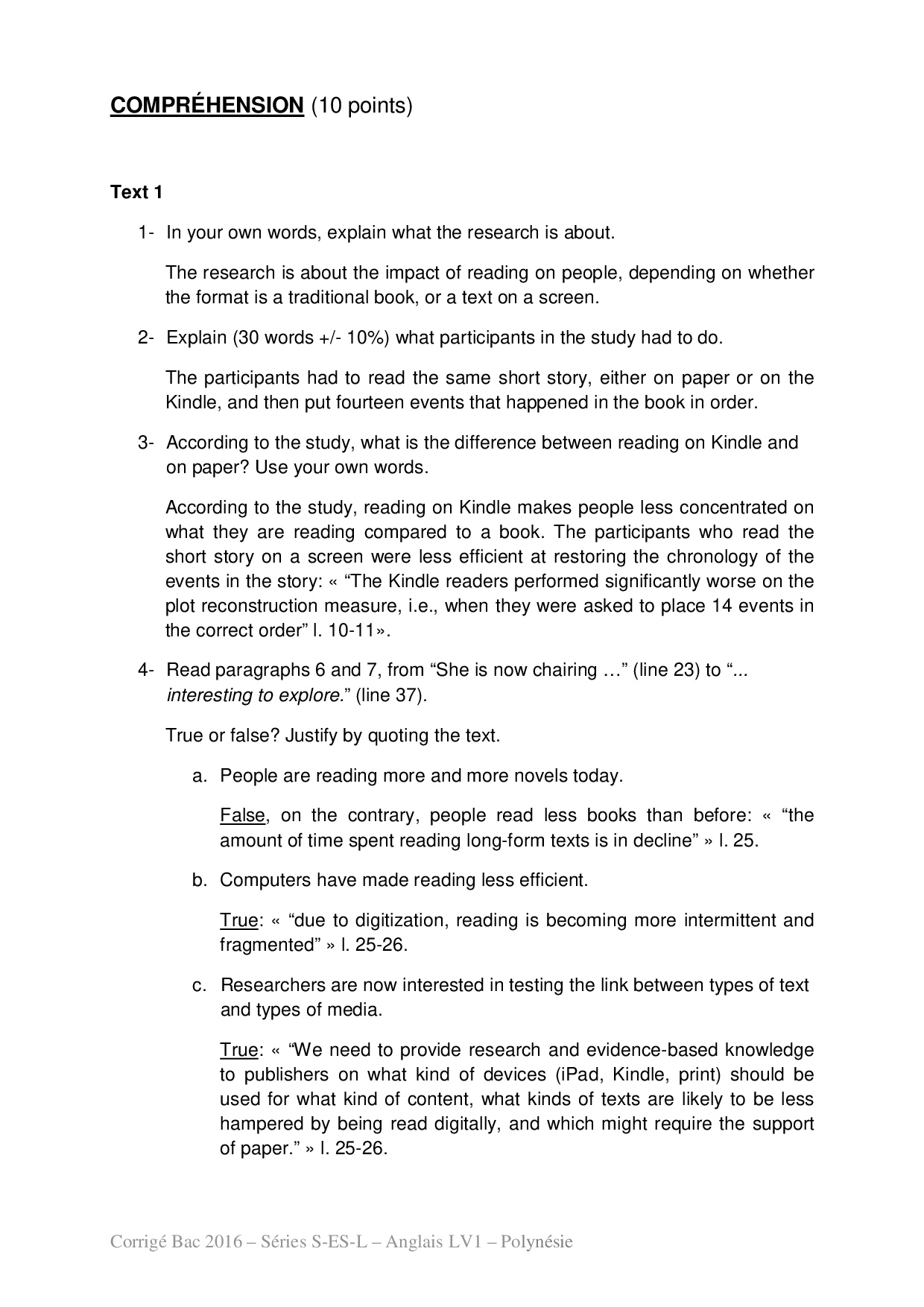 Bac S-ES-L Anglais LV1 Polynésie 2016 - Corrigé
