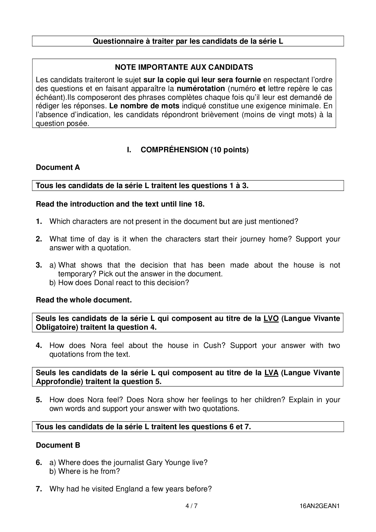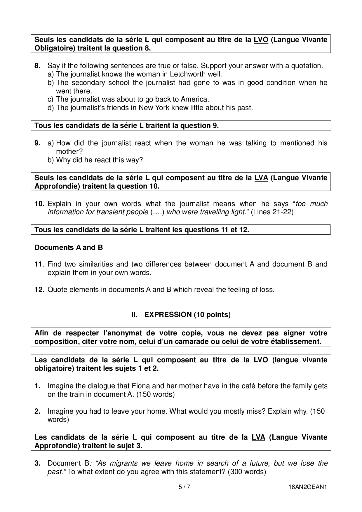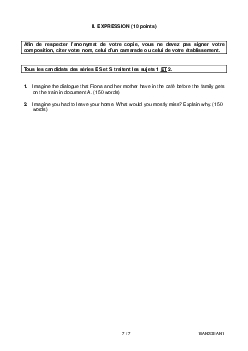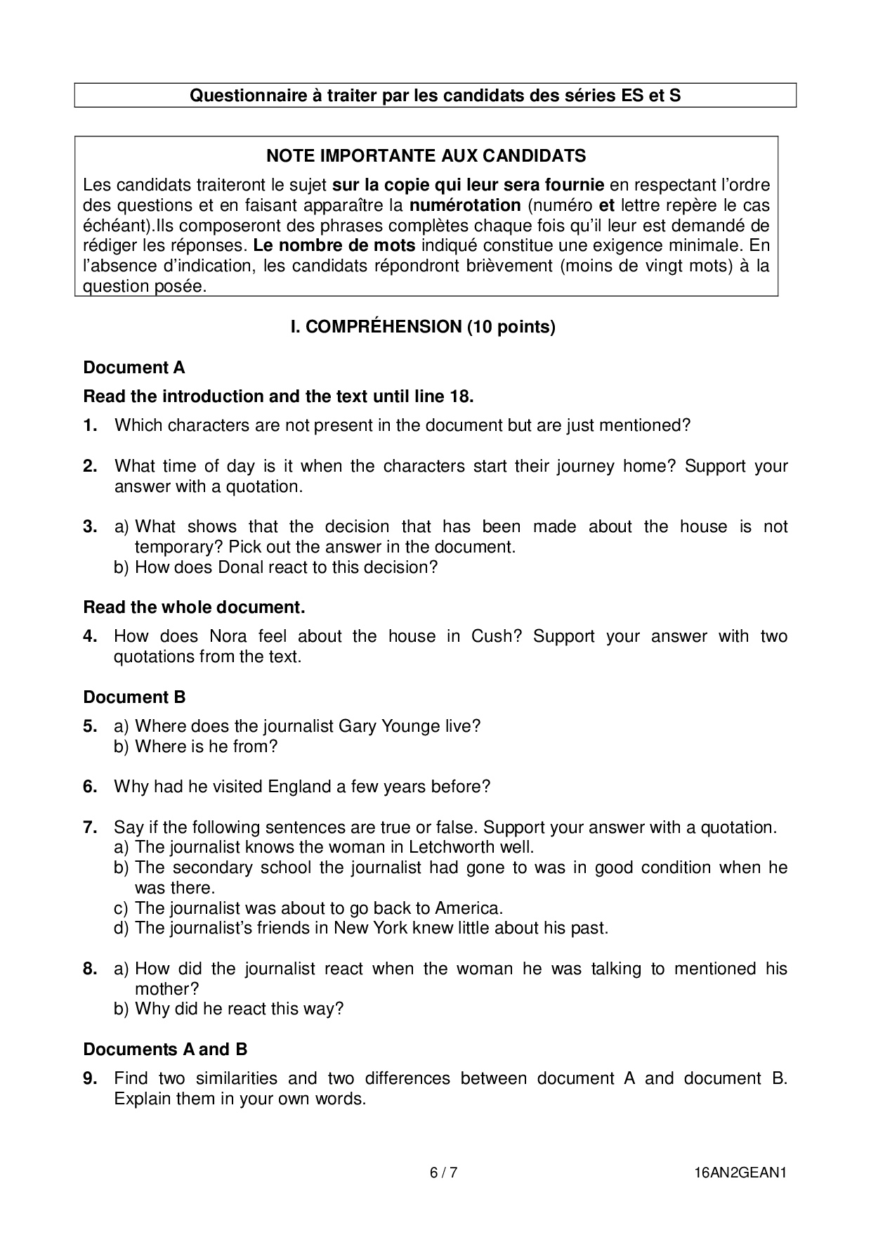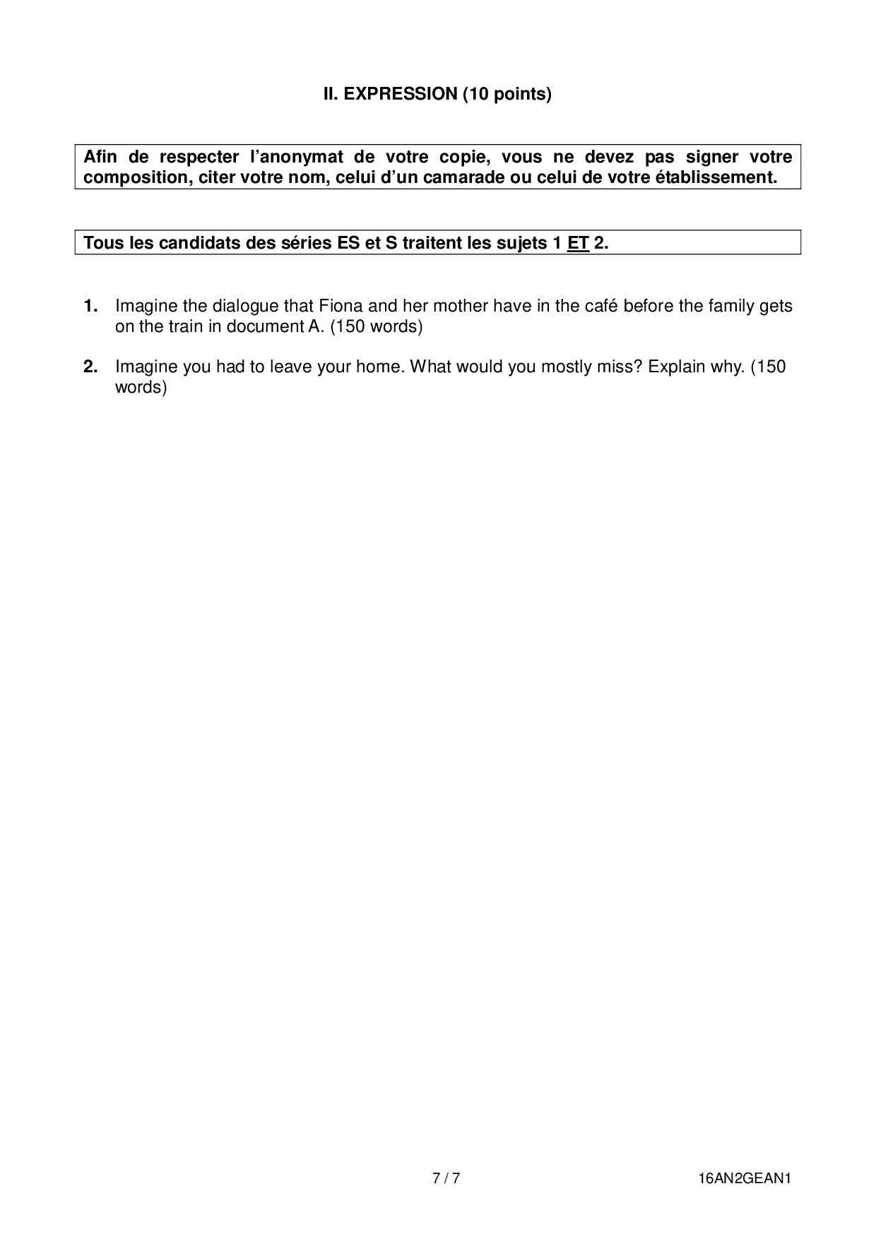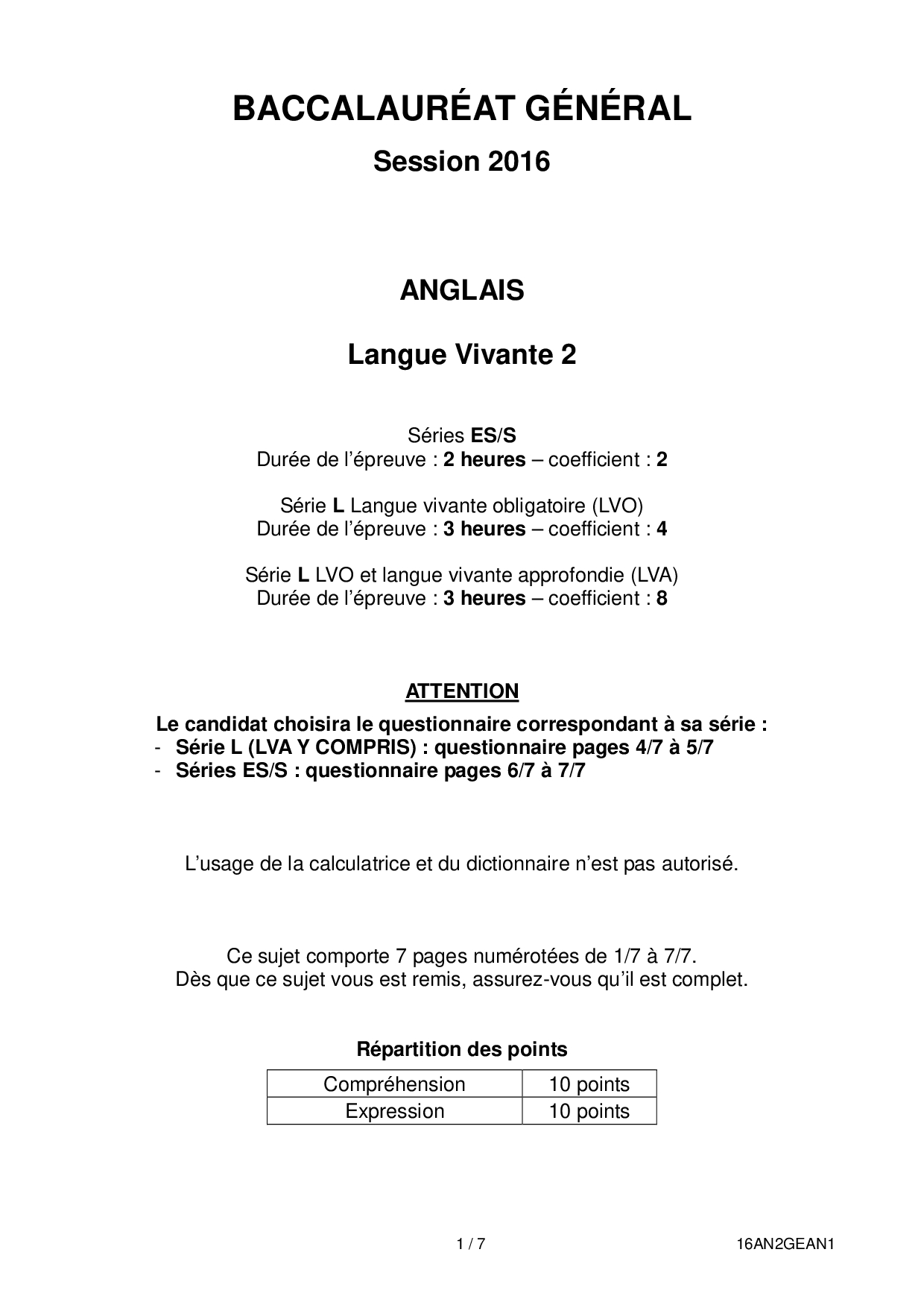 Bac S-ES-L Anglais LV2 Amérique du Nord 2016 - Sujet