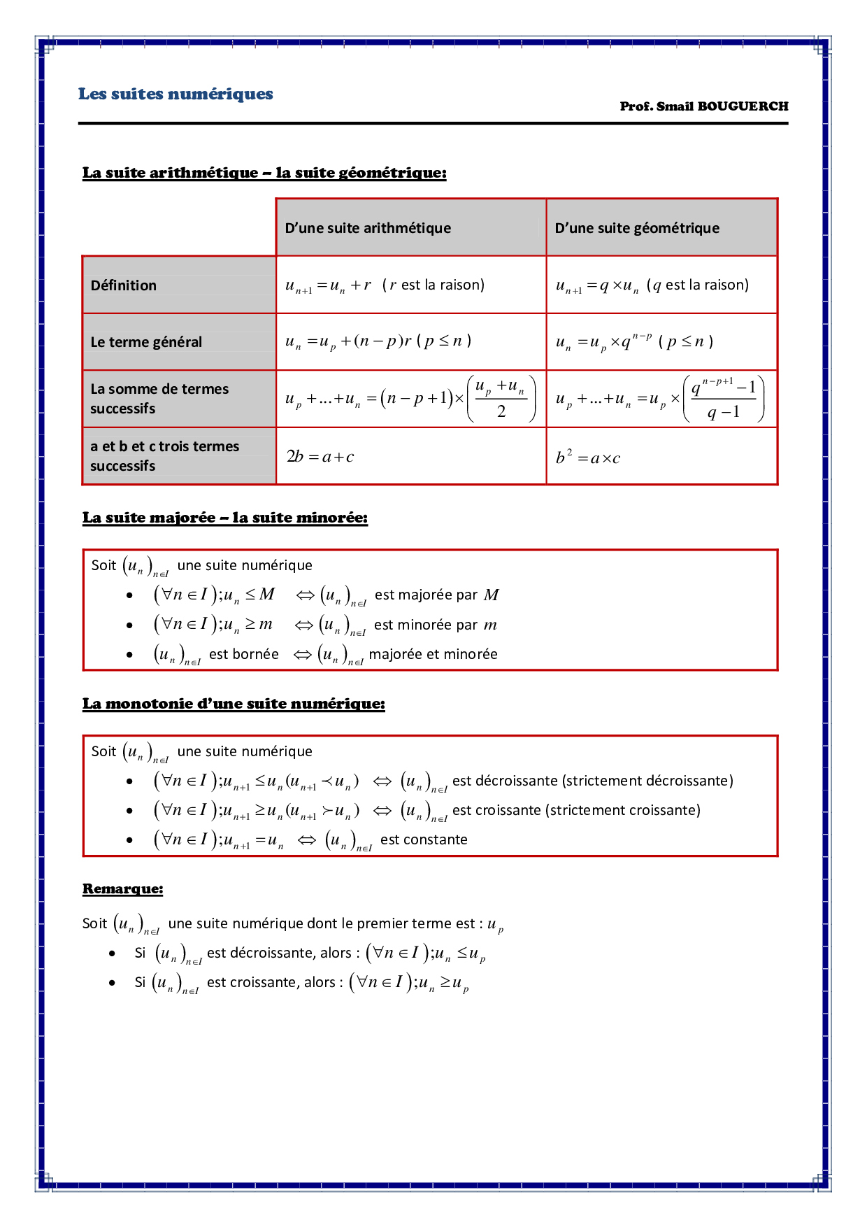 Suites numériques - Résumé de cours 4