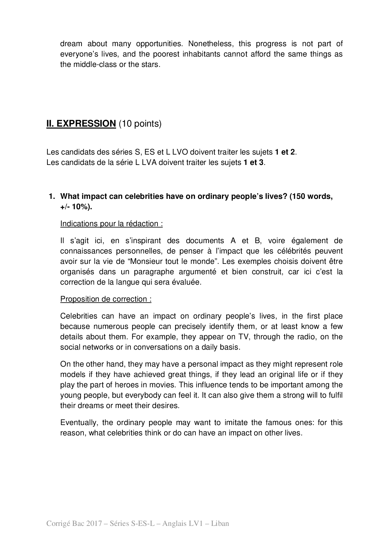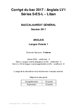 Bac S-ES-L Anglais LV1 Liban 2017 - Corrigé