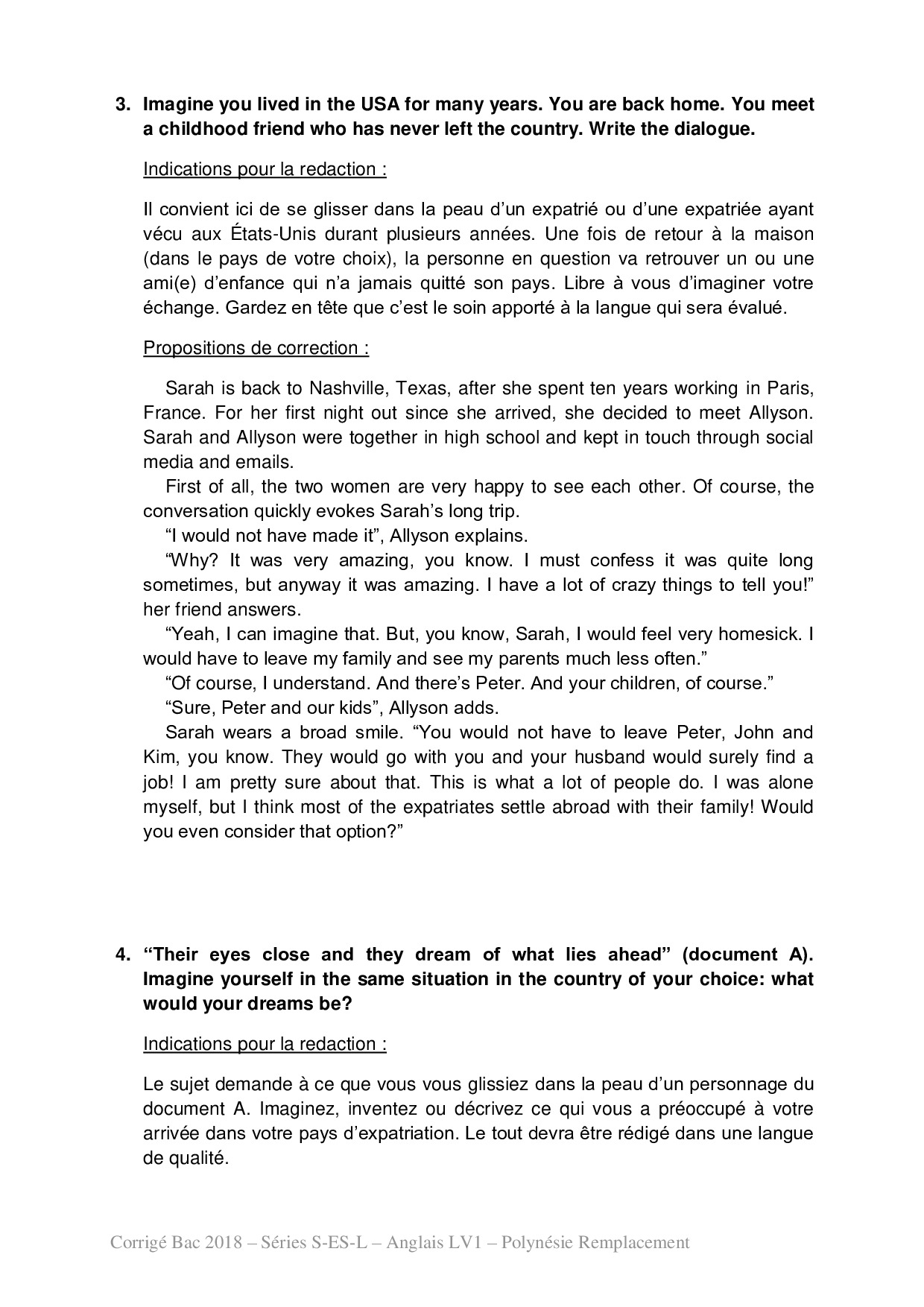 Bac S-ES-L Anglais LV1 Polynésie 2018 (Session de remplacement) - Corrigé