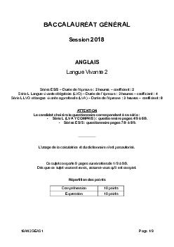 Bac S-ES-L Anglais LV2 Amérique du Sud 2018 - Sujet