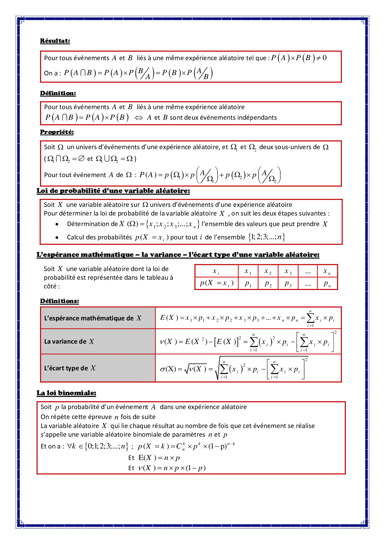 Probabilités - Résumé de cours 3