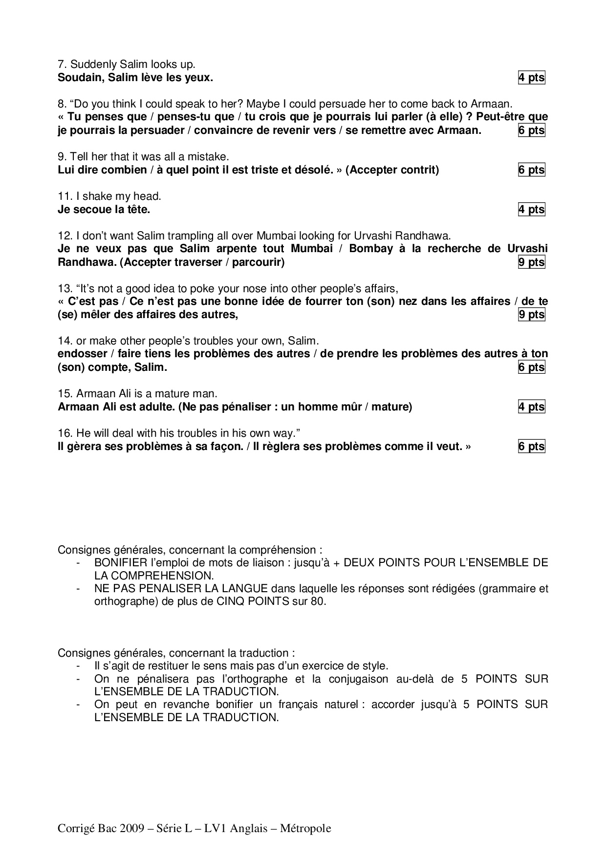 Bac L Anglais LV1 Métropole 2009 - Corrigé