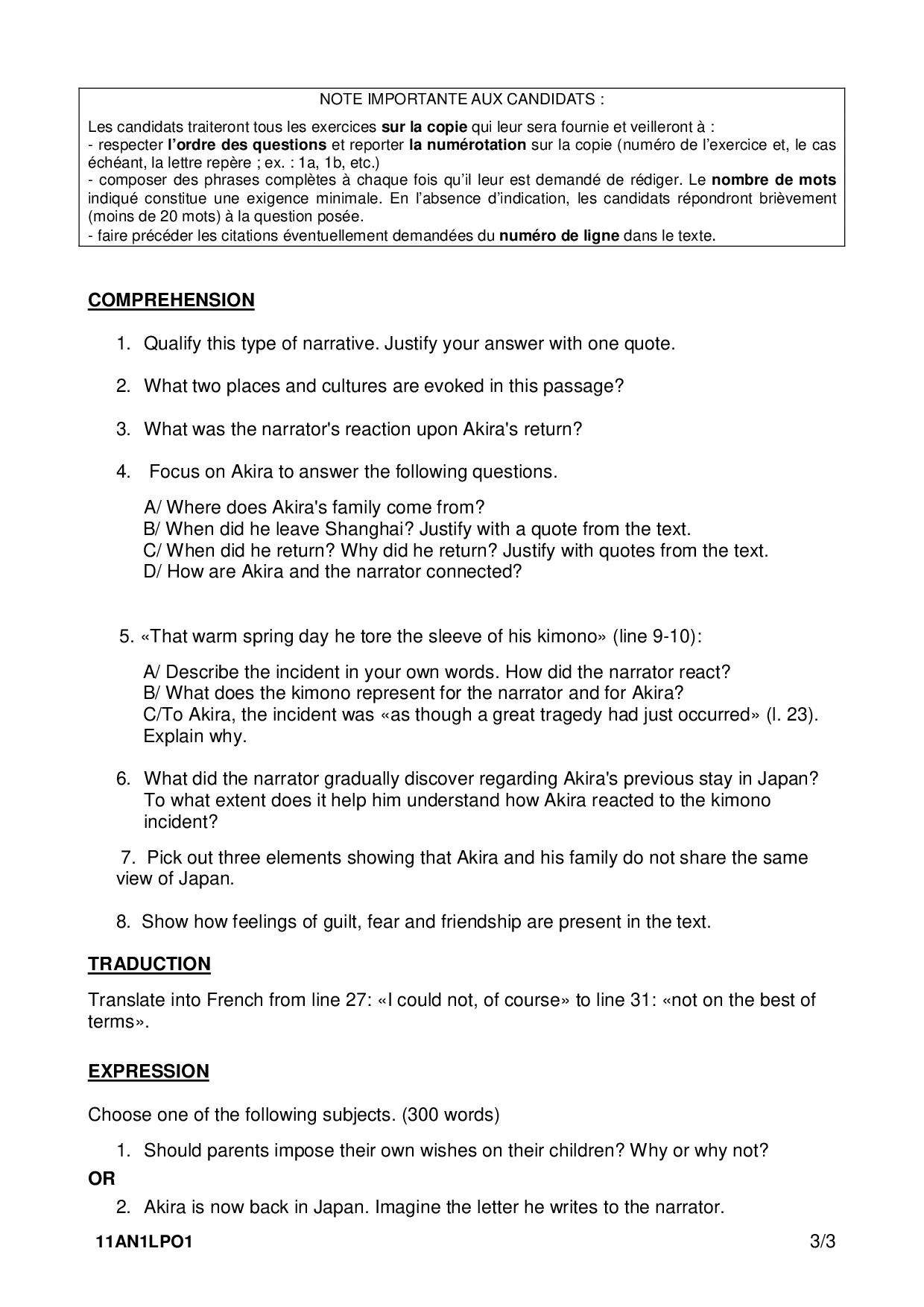 Bac L Anglais LV1 Polynésie 2011 - Sujet