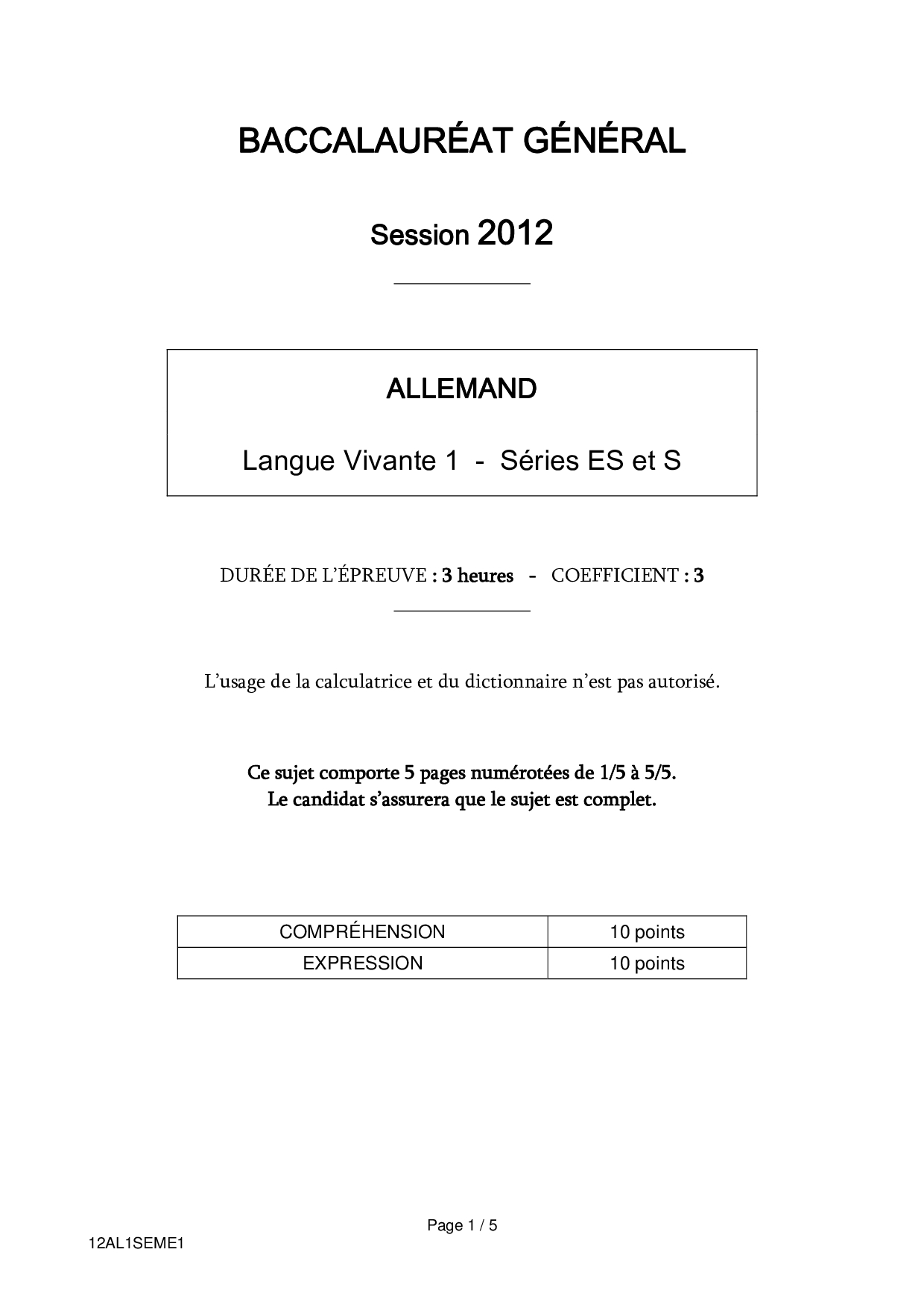 Bac S-ES Allemand LV1 Métropole 2012 - Sujet
