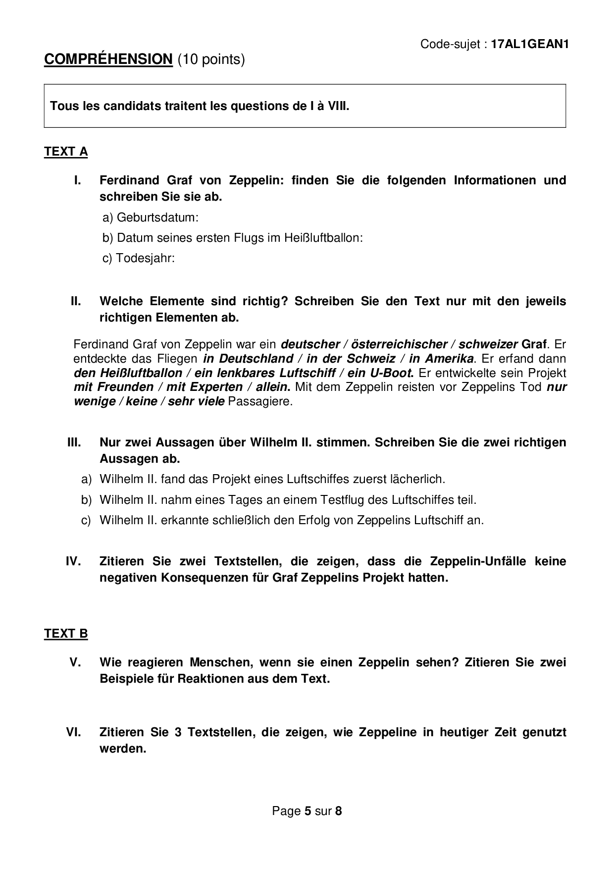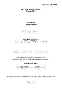 Bac S-ES-L Allemand LV1 Amérique du Nord 2017 - Sujet