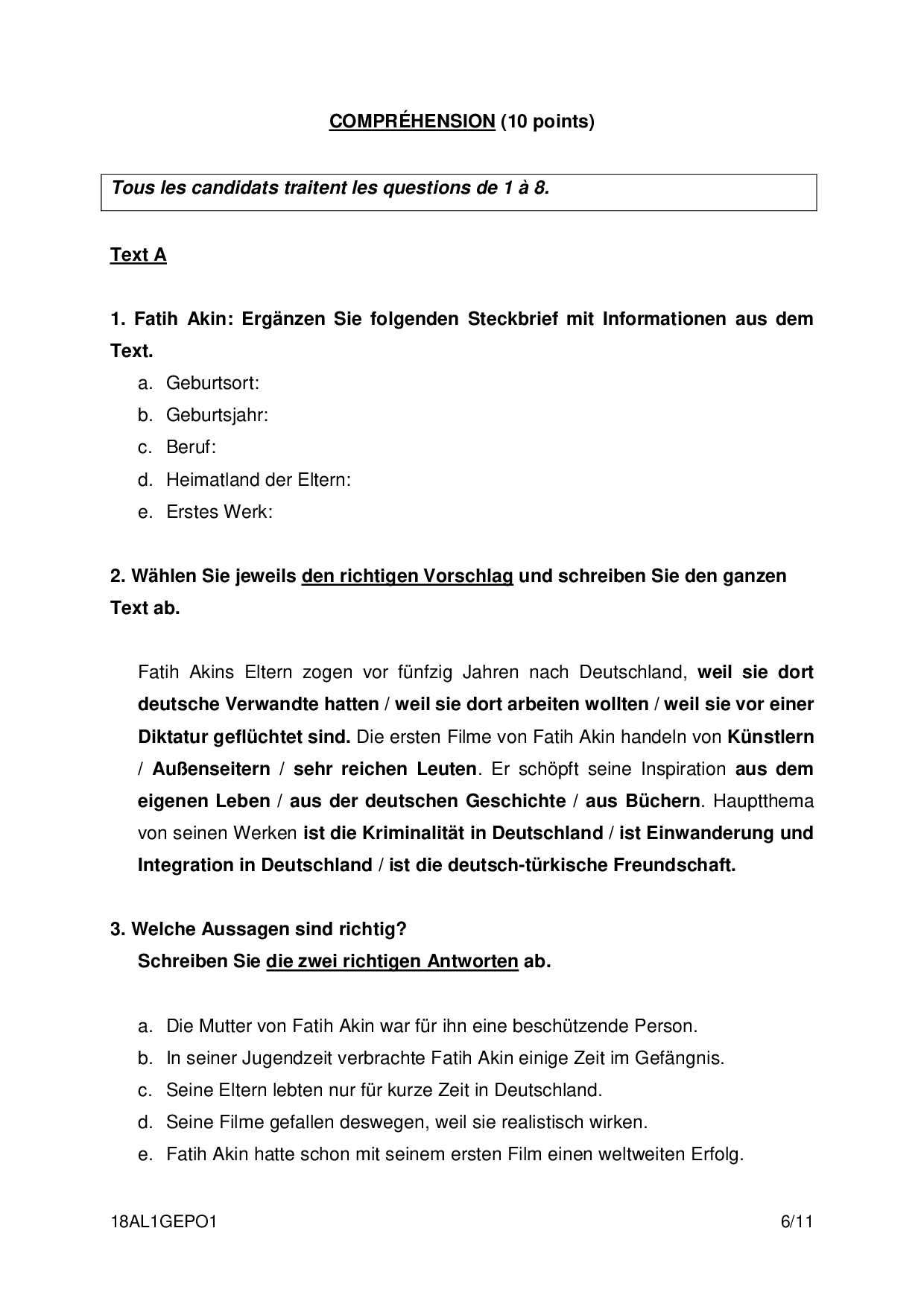 Bac S-ES-L Allemand LV1 Polynésie 2018 - Sujet