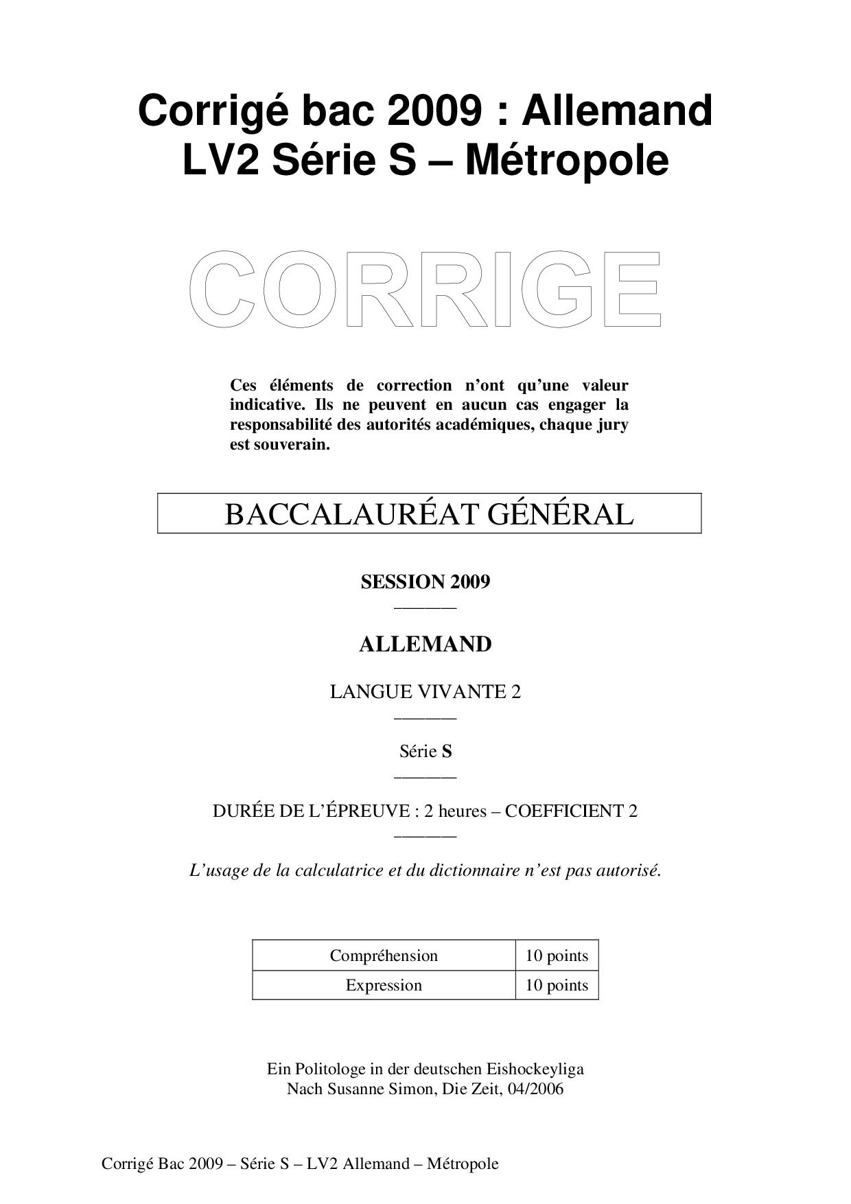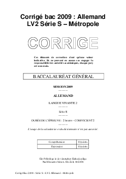 Bac S Allemand LV2 Métropole 2009 - Corrigé