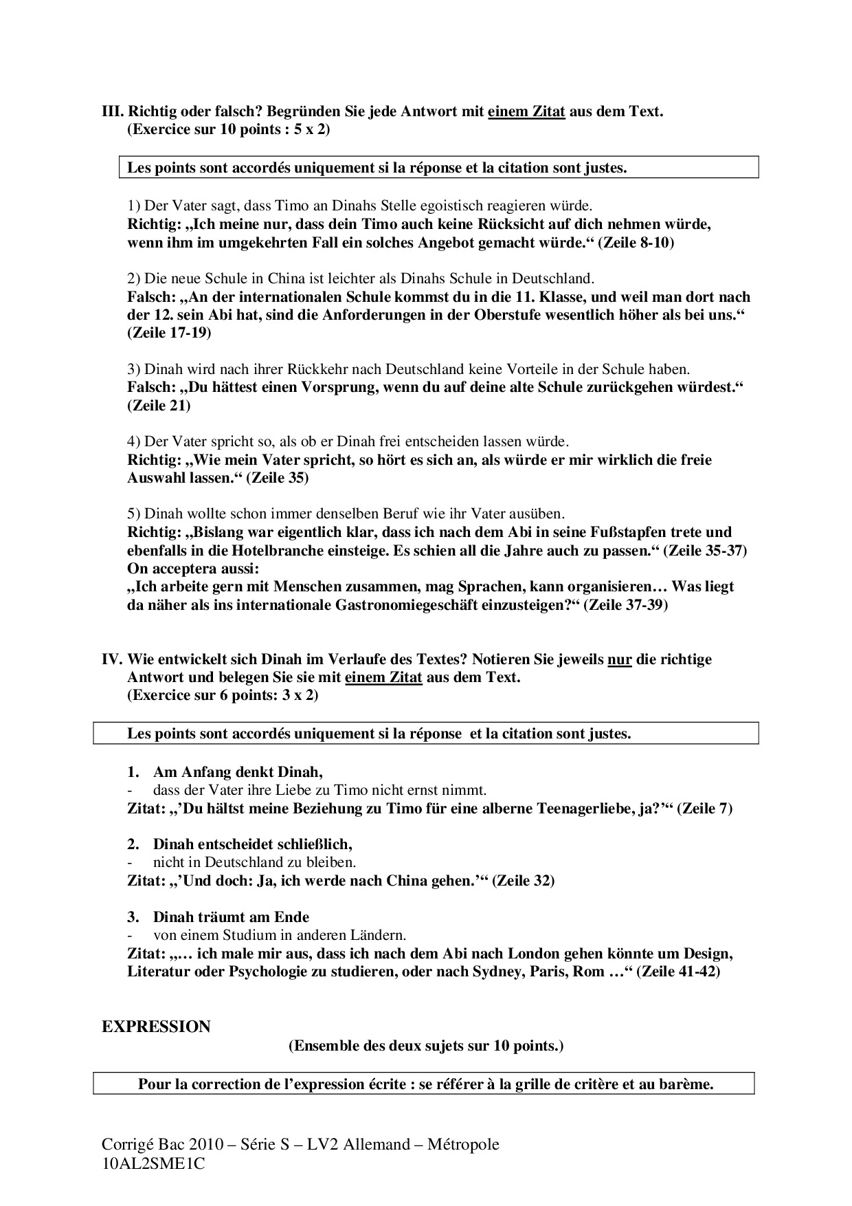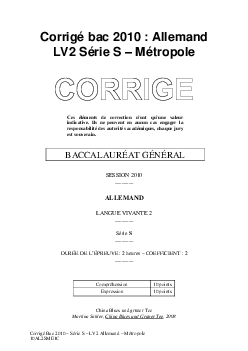 Bac S Allemand LV2 Métropole 2010 - Corrigé