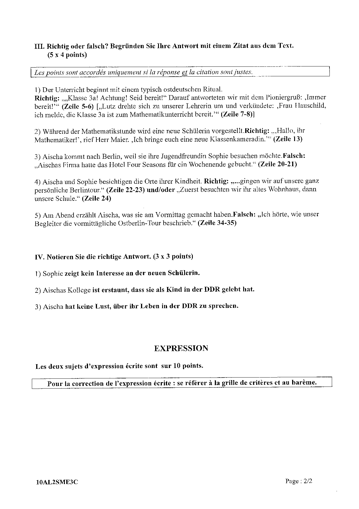 Bac S Allemand LV2 Métropole 2010 (Session de remplacement) - Corrigé