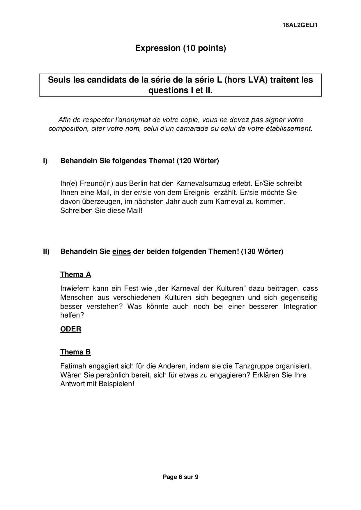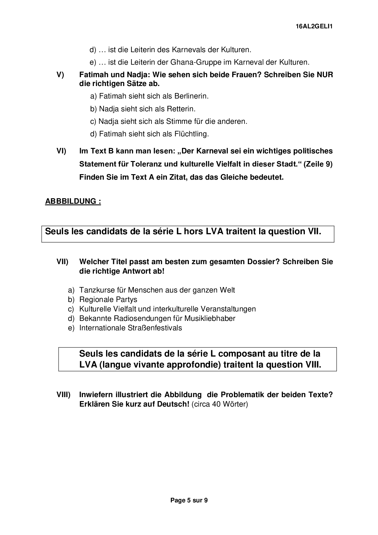 Bac S-ES-L Allemand LV2 Liban 2016 - Sujet