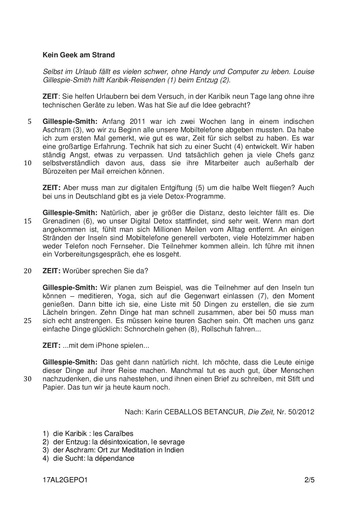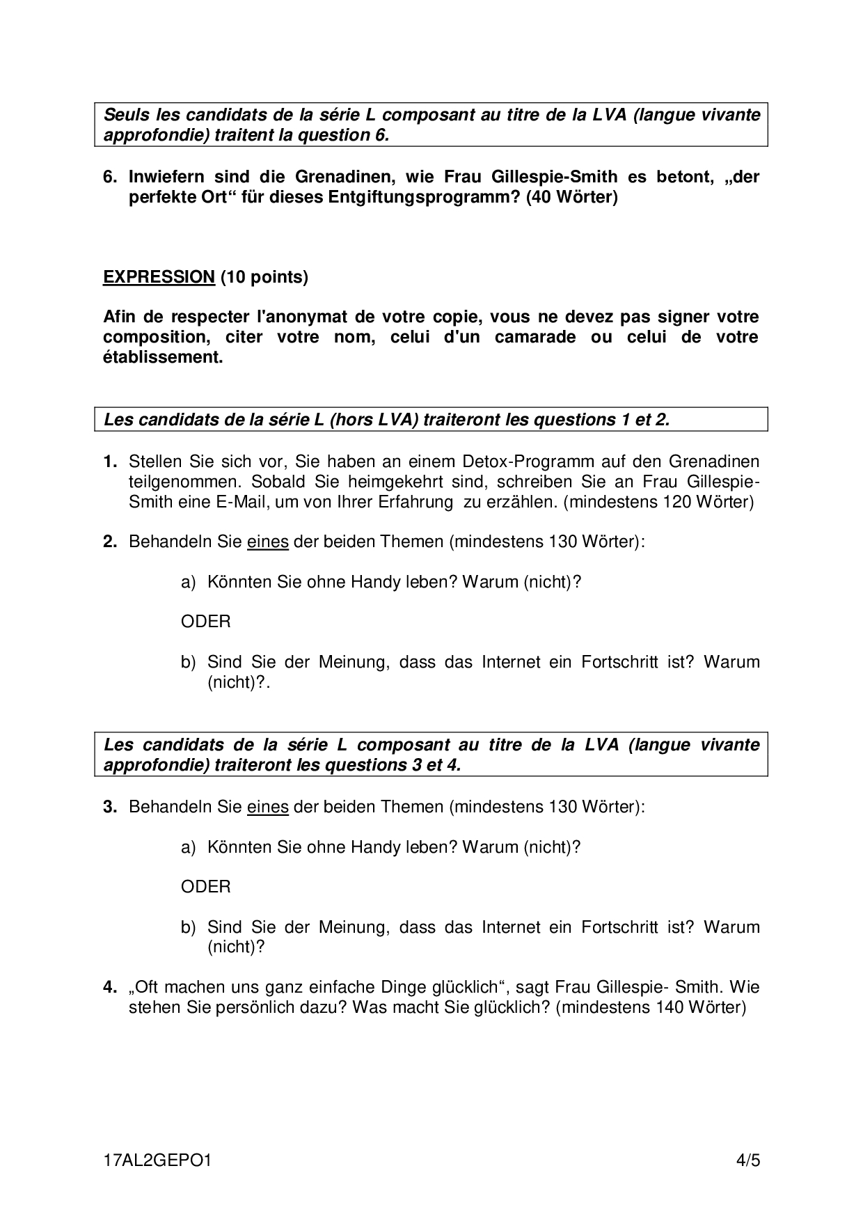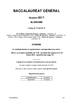 Bac S-ES-L Allemand LV2 Polynésie 2017 - Sujet