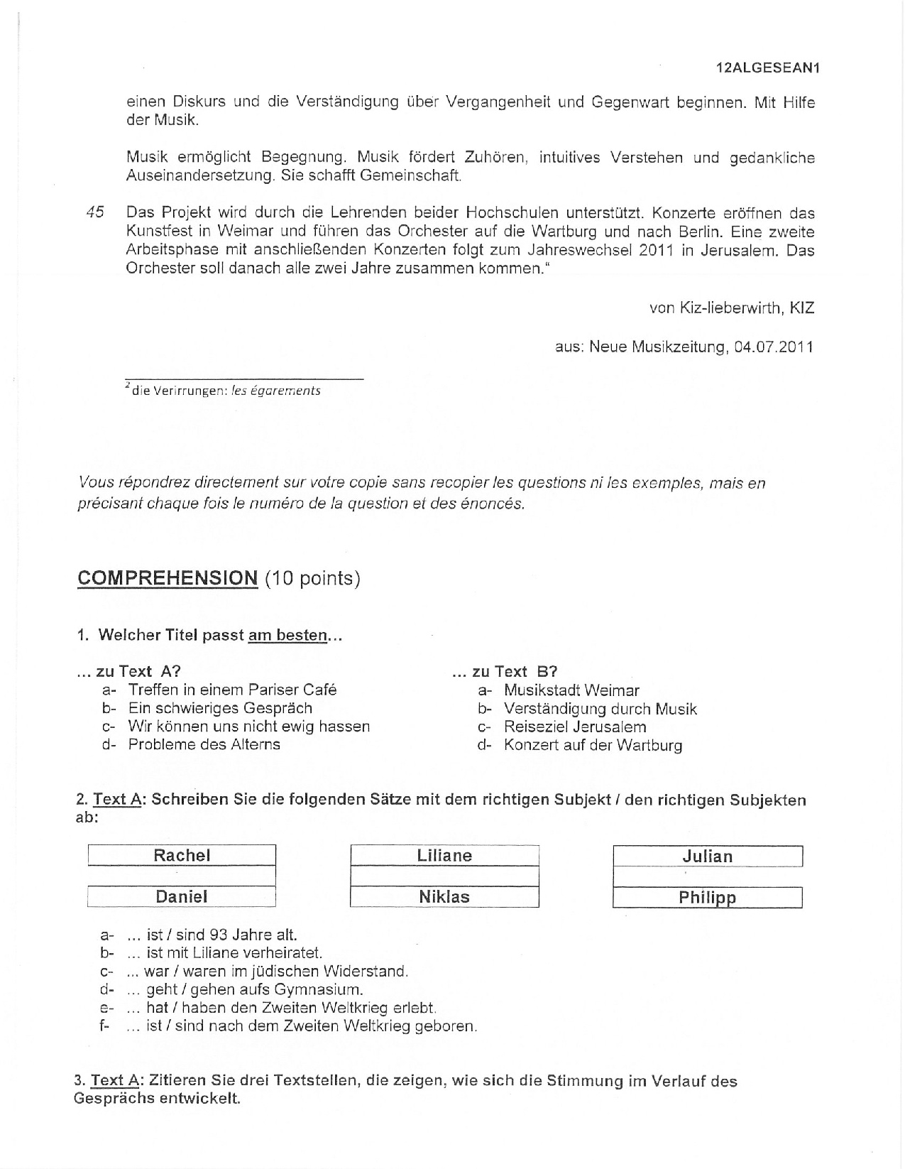 Bac S-ES Allemand LV1 Amérique du Nord 2012 - Sujet