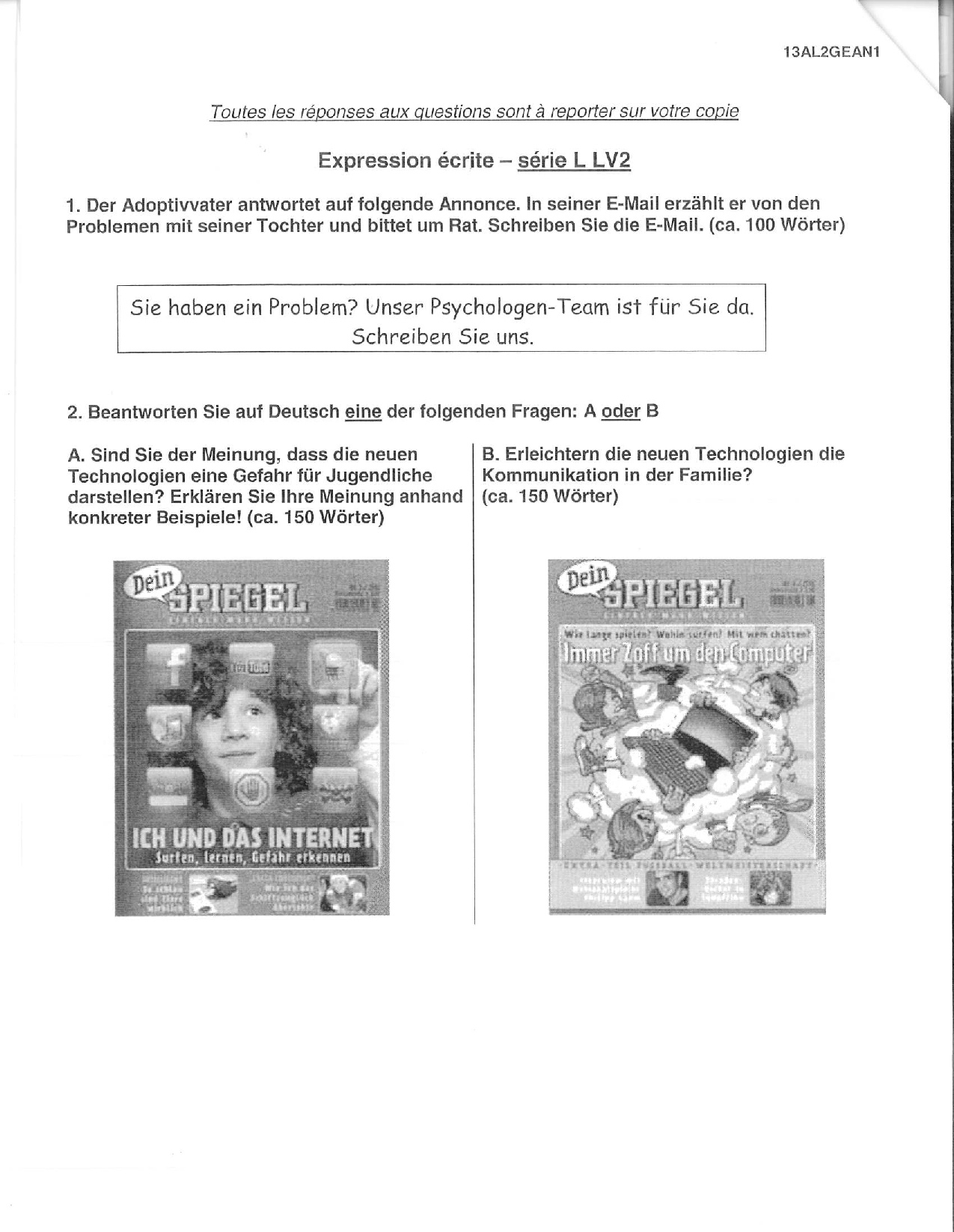 Bac S-ES-L Allemand LV2 Amérique du Nord 2013 - Sujet
