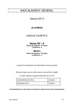 Bac S-ES-L Allemand LV2 Polynésie 2013 - Sujet